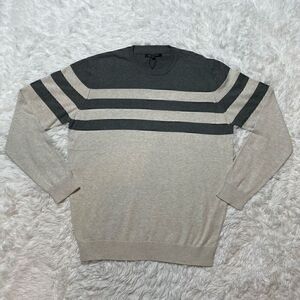Britches Sweater Grey Beige Stripe Size Large Crewneck Pullover NEW
