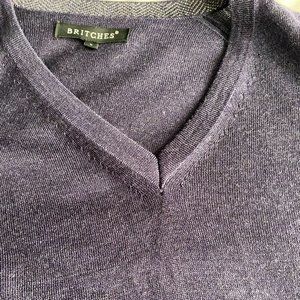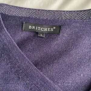 Britches Sweater Men's Purple Pullover Merino Wool Blend Size L Knit V Neck Top