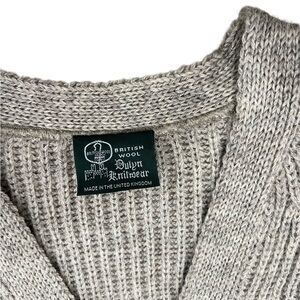 British Wool Dulyn Knitwear Cable Knit Cardigan | Suede Leather Shoulder & Elbow Patches | Size Large