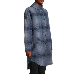 Design Lab Blue Plaid Longline Oversize Britney Shacket Wool Blend Small Medium Large