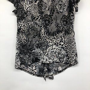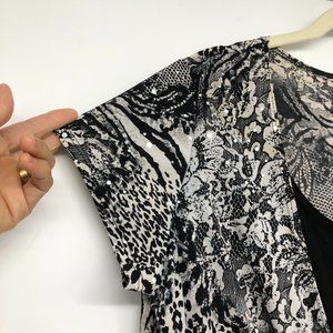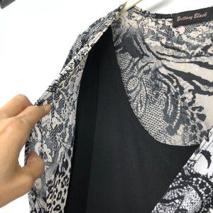 Brittany Black Grey Short Sleeve Abstract Layered Blouse size XL