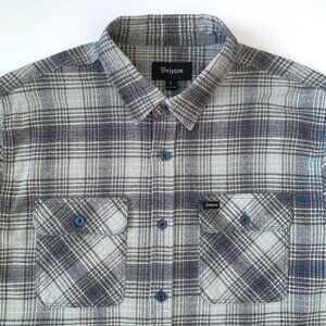 Brixton Bowery Plaid Flannel Long Sleeve Button Up Blue Grey Shirt Workwear