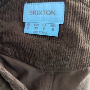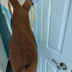 Brown corduroy. Size small. Crotch: 32 cm. Waist: 40.5 cm Hips: 48 cm. Thigh width: 24 cm. 100% cotton. 2 pockets in the front and back. Adjustable straps.
