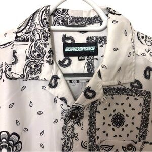 Broadsports Bandana Print Button-Up Shirt Men’s Large Black & White