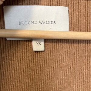 Brochu Walker Faux Wrap Tan Ribbed Long Sleeve Sweater Top
