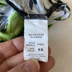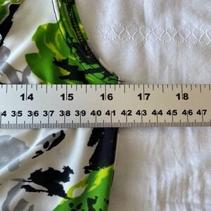 Brochure Women's Abstract Off-Center V-neck Ruffled Sleeveless Satin Blouse Med