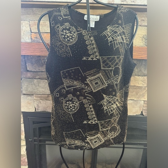 Black nylon/spandex mix tank with some gold sparkle! Great for the holidays to pair with a pair of trouser pants or skirt❤️‍🔥