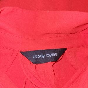 Elevate your wardrobe with this chic red button-up blouse. Perfect for any occasion, this top offers both style and comfort. Has cutout detailing at back neck area and slightly longer hemline in back.