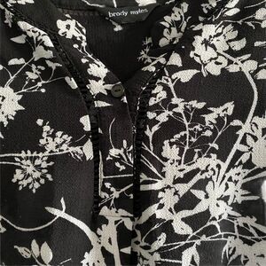 Brody myles Black and White Floral Print V Neck Blouse 3/4 Length Sleeves US M