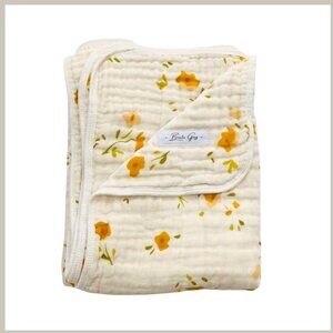 Blanket in soft cream with yellow floral print
