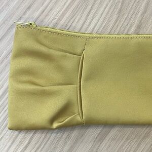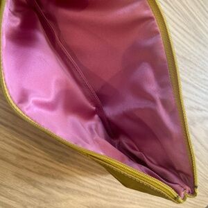 Brontibay Paris Mustard Yellow Jewel Tone Satin Bow Clutch Purse with Zip. Such a pretty clutch that goes with anything as it stands on its own! Interior pink lining and zip closure. Simple, elegant, perfect! Made in France, purchased in New York City, preloved in Toronto! Three other colours to choose from (I obviously couldn't!). ☺️ Note: Small marks on one side of outside lining, and small mark on bottom of one side of inside lining, as shown in last two photos.