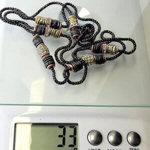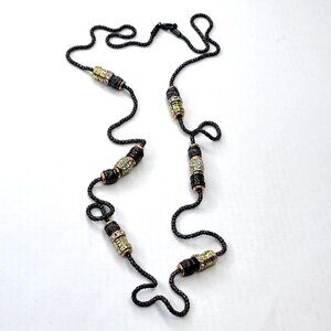 Long crystal and Bead Necklace in a Bronze Goldish hues