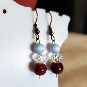 Bronze Hook Glass Bead and Cat's Eye Bead Earrings