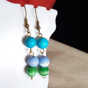 Bronze Hook Blue Jasper and Blue/Green Cat's Eye Bead Earrings NWT