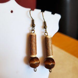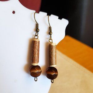 Bronze Hook Wood and Tiger's Eye Bead Earrings NWT