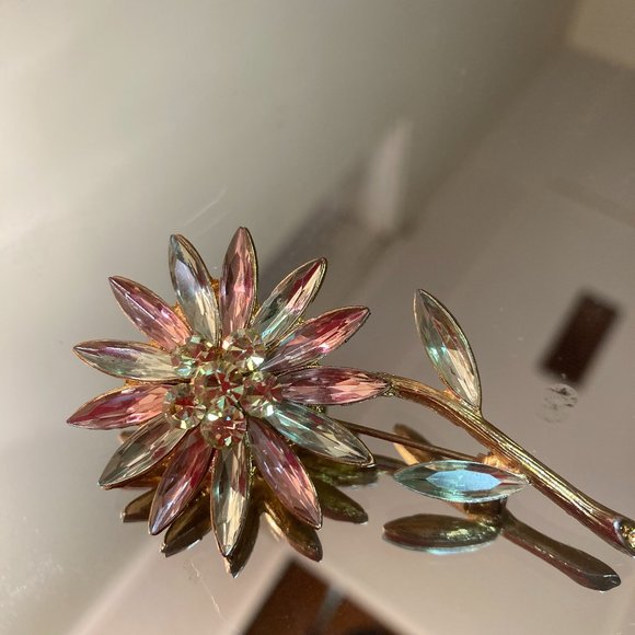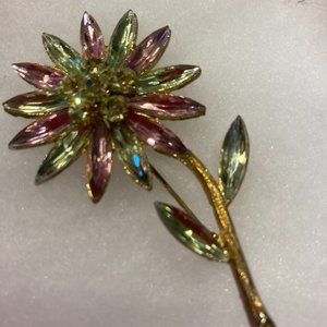 this is a 2 3/4 inch flower pin vintage glass
