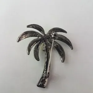 Vintage Bejeweled Crystal and Enameled Green Palm Tree Brooch. Hinge Pin to underside. Measures approx. 1.75 x 1.75 inches. In Excellent Condition.