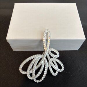Vintage brooch with clear crystals throughout the brooch. Measures 2 inches wide and 1.5 inches at longest point.