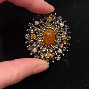 Brooch Sarah Coventry Cabochon. Vintage. Orange. Yellow. Pearl. Unique. Stunning