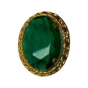 Brooch – Vintage 1940s Gold-Tone Filigree Oval with Emerald Rhinestone