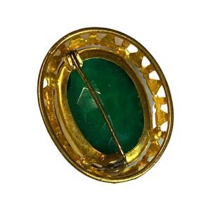 Brooch – Vintage 1940s Gold-Tone Filigree Oval with Emerald Rhinestone