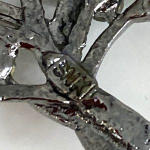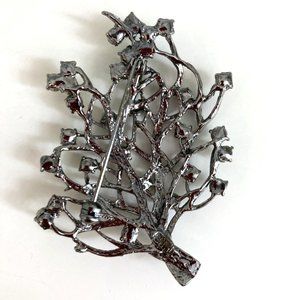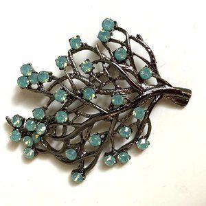 About 2-1/2 X 2 inches, this brooch is remarkable for the colour of its rhinestones. Created in the 80s or 90s by SNK, which I think is a brand from South Korea. In top condition.