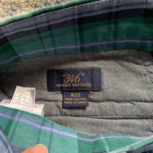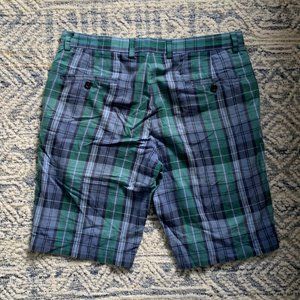 Excellent condition (lost weight too big now) blue and green plaid shorts with front slant pockets and back buttoned pockets (sorry wrinkly from storage).