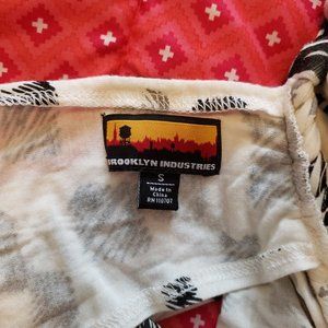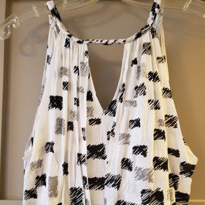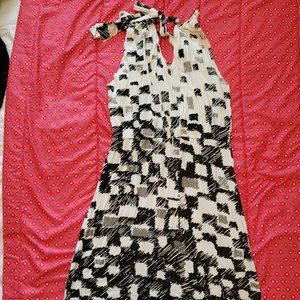 Brooklyn Industries graphic black and white jersey print dress. Ties at back of neck. Gathered at waist. Knee length. Size small.