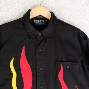Brooks And Dunn Shirt Mens Large Black Red Flames Button Up Heavyweight Western