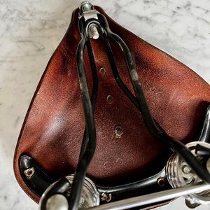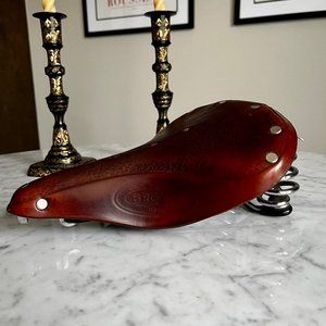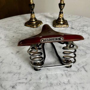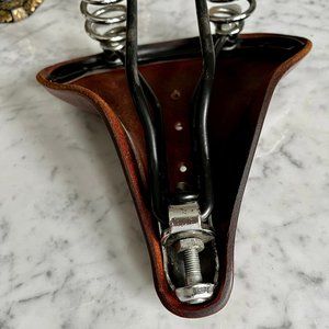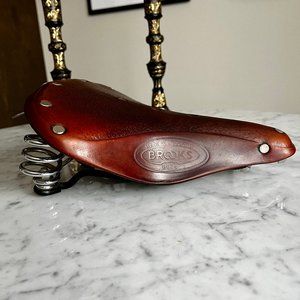 This is a used, Brooks B67s Saddle in Honey leather. It currently retails for $170 USD (approx $227 CAD) on Brooks's website. The leather seat is in great condition, as are the metal springs, but the coating on the bottom metal rails has worn from where the saddle was attached to my bicycle. The saddle itself is really comfortable and is optimal for more upright riding positions.