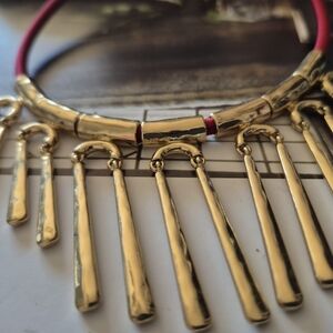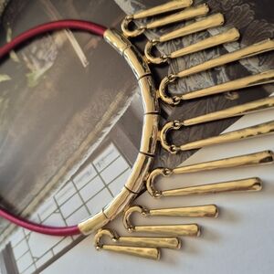 Brooks BROTHERS Gold and Red CORD Necklace with Dangling Charms
