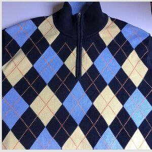 Brooks Brothers “346” 1 /4 zip colourful argyle Pima cotton pullover Sz XL
