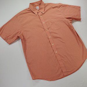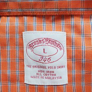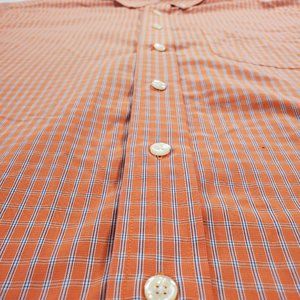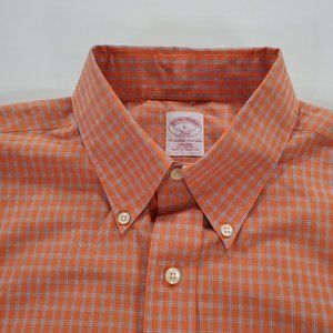Brooks Brothers 346 Shirt Men Large Orange Windowpane Plaid Non-Iron Button Down