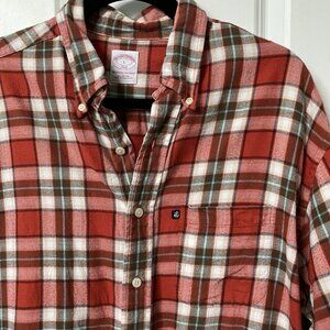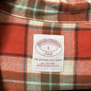 Brooks Brothers 346 Shirt Mens L Cotton Red Plaid Flannel Button Up Long Sleeve