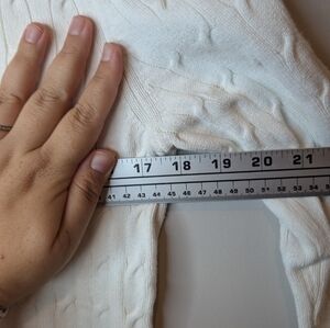 This size medium sweater is crafted from a high-quality material and features a beautiful white cable knit pattern that adds a touch of texture and sophistication.