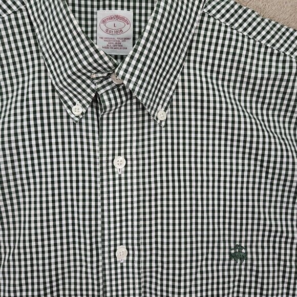Brooks Brothers Dress Shirt Non-Iron Plaid Long Sleeve Button Down Men's Size L