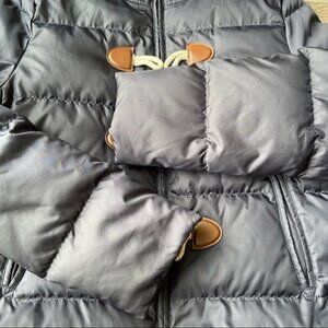 Very good preowned condition- minor signs of wear; wooden buttons are missing; hood is missing