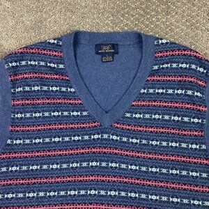 Brooks Brothers Fair Isle Vest Sweater Men's Large Blue Cashmere Cotton Blend