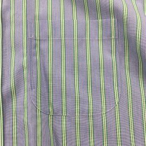 Brooks Brothers Formal Shirt Men 16.5 - 34 Gray Green Stripes Non-Iron Cotton