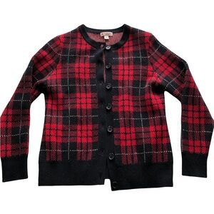 ✨Brooks Brothers red fleece houndstooth red and black cardigan sweater