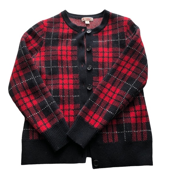 ✨Brooks Brothers red fleece houndstooth red and black cardigan sweater