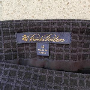 Selling a classic Brooks Brothers Womens Skirt Size 14 Black Gray Pencil Check Knee Length. It's 99% cotton and 1% spandex so it fits beautifully with a bit of give. Gorgeous fabric. Cute little slit at the back. Side zipper.