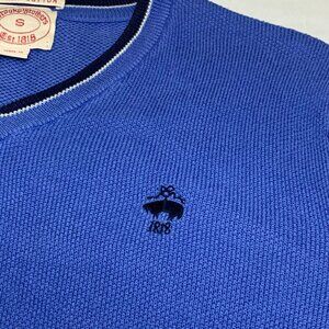 Brooks Brothers Mens 100% Supima Cotton Long Sleeve V-Neck Sweater Blue Sz Small