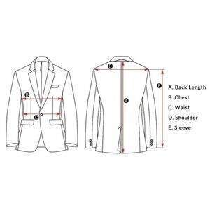 • Measurements: Back Length A. 31.5 Chest B. 21 Waist C. 19.5 Shoulders D. 18.5 Sleeve E. 24