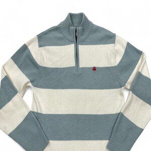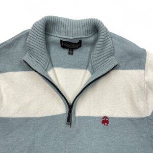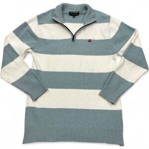 Brooks Brothers Men's Blue White Stripe Zip Collar Lamb Wool Sweater XL Slim Fit