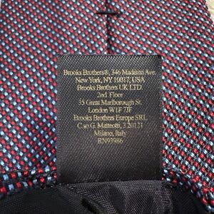 Brooks Brothers Mens Classic Necktie 100% silk Blue Red Microdot Made in USA