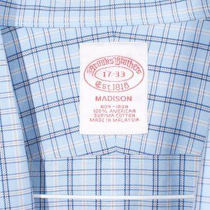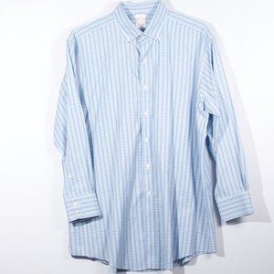 Brooks Brothers Men's Dress Shirt 17-33 Blue Windowpane Cotton Madison