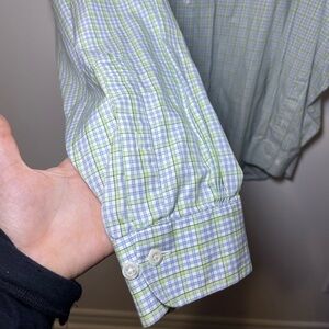 Brooks Brothers Men’s green blue plaid Long sleeve button down shirt in XL