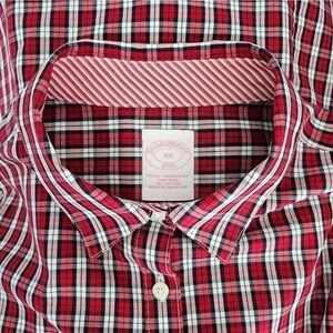 Brooks Brothers Red Plaid Fitted Non-Iron Cotton Button Shirt