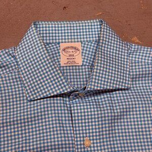 Brooks Brothers Regent Blue White Check Dress Shirt 15 1/2 - 4/5 Medium